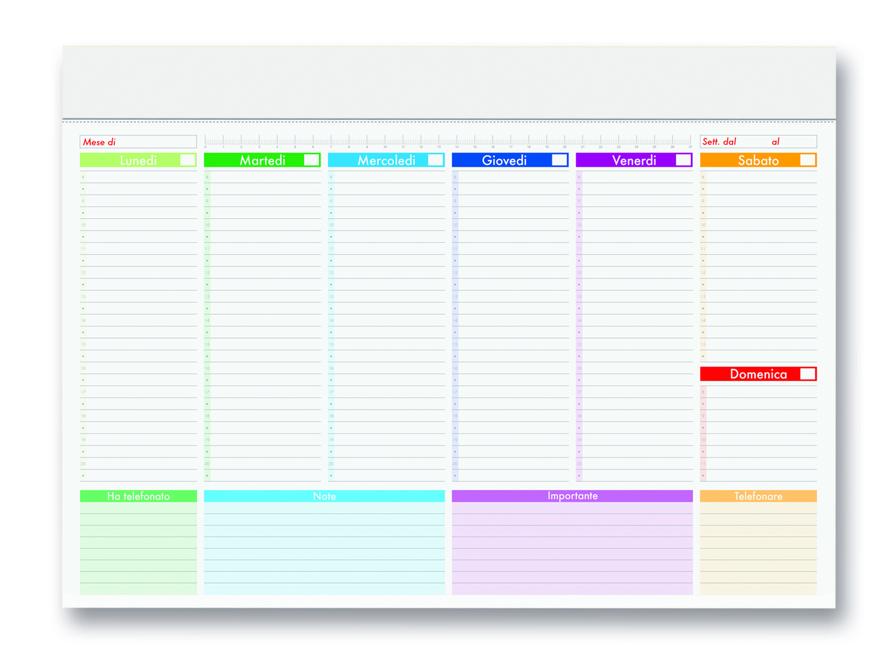 Planning da tavolo settimanale perpetuo „Multicolor”