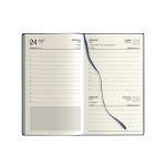 - Copertina in materiale sintetico cartonato con stampa del millesimo e chiusura con elastico di colore abbinato.
