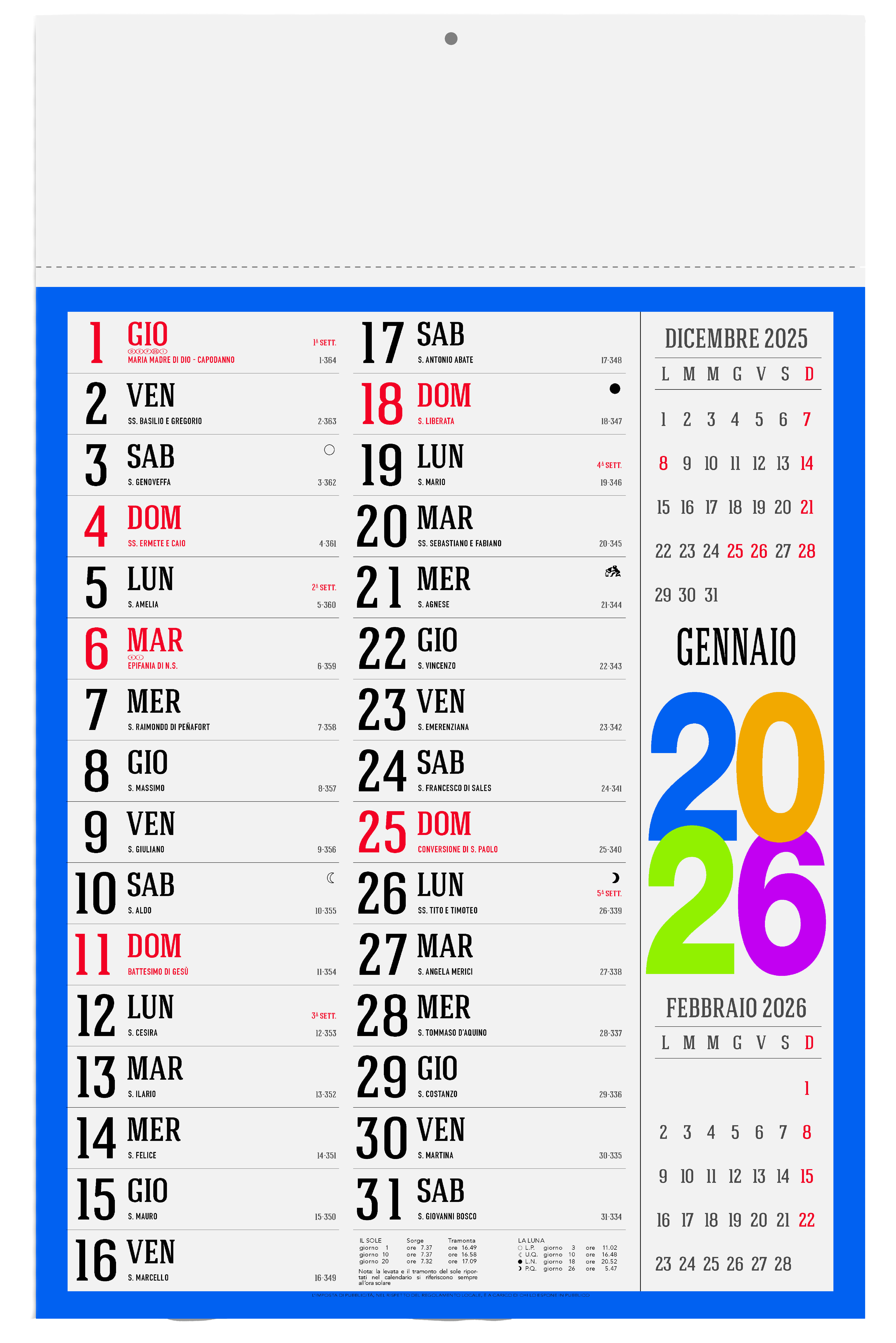 - 12 fogli mensili su carta patinata da 70 g.
