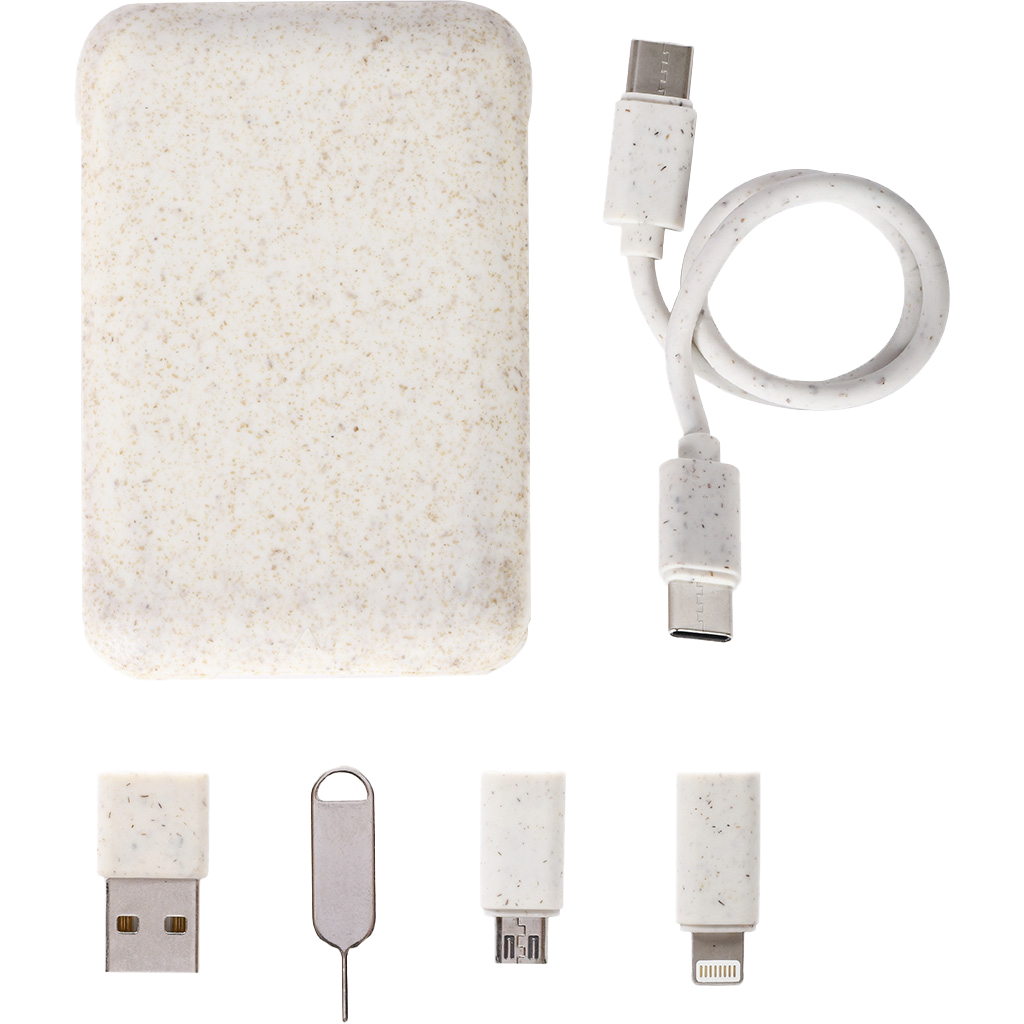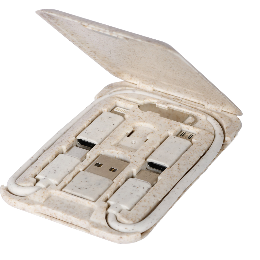 Set per ricarica e trasferimento dati in paglia di grano e ABS, ecologico e multifunzionale.