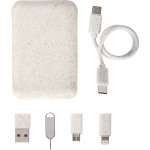 Questo set include un cavo con connettori micro USB ( tipo C) alle sue estremità, permettendo la ricarica e il trasferimento dati con facilità. Può fungere da supporto per smartphone ed è dotato di un accessorio metallico per espellere le SIM card.
